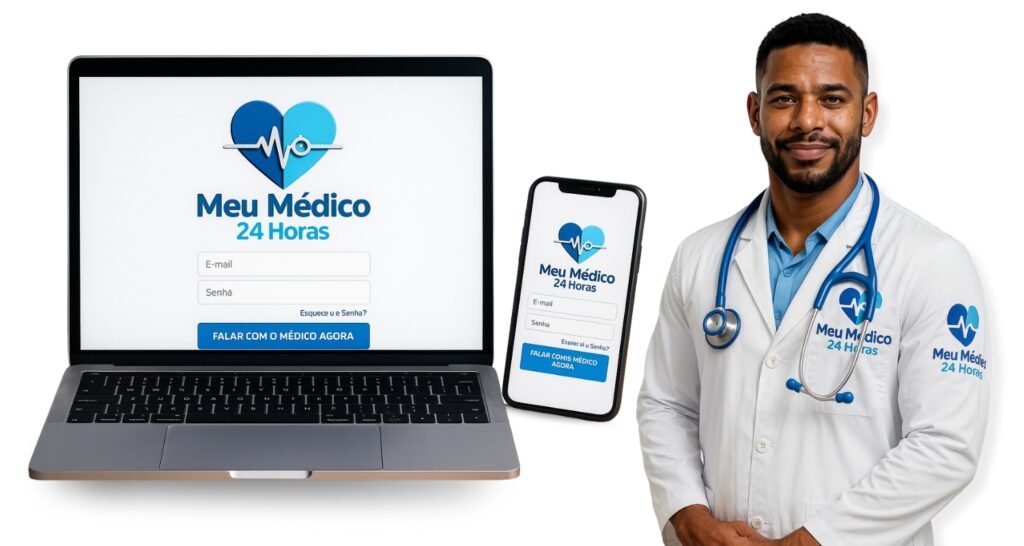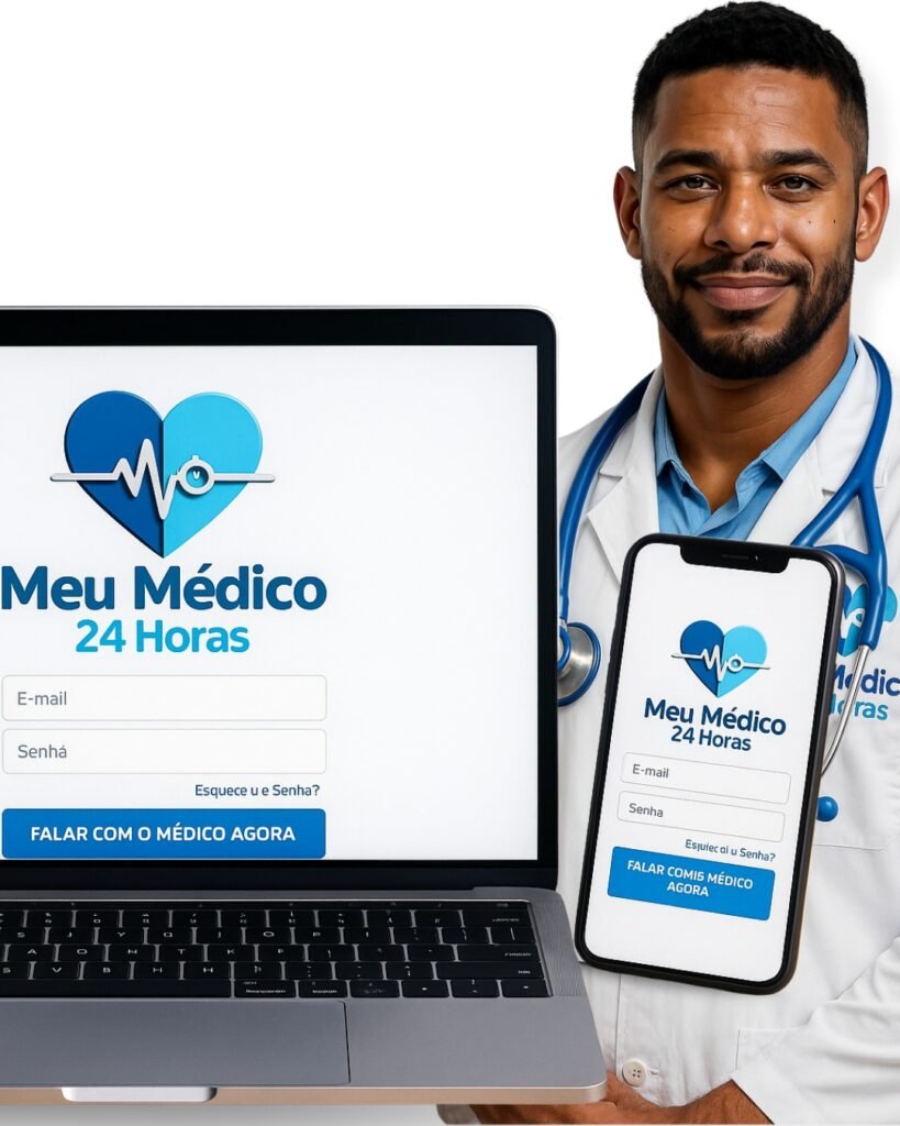 O Meu Médico 24h não é um plano de saúde, não é um cartão de descontos e não oferece atendimento presencial. O serviço é destinado exclusivamente a consultas médicas por vídeo, direcionadas a orientações de urgência e emergência de baixa complexidade, conforme permitido pela legislação vigente de Telemedicina no Brasil.